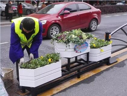 道路花箱因為其造型多樣,可以根據(jù)當?shù)匚幕O(shè)計成不同的造型,可以制作貼畫進行文化宣傳,將人文與生態(tài)相結(jié)合,將城市景觀融入文化因素,打造不一樣的生態(tài)城市。