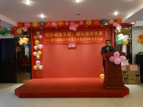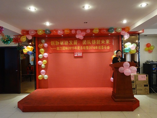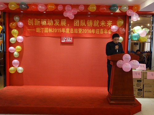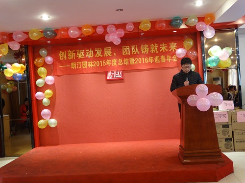 歲月匆匆,人海茫茫,共同的心愿與目標(biāo),使我們相逢在這里。成功伴著艱辛,收獲伴著汗水。在充實(shí)忙碌的每一天中,我們迎來了嶄新的2016年!---朗汀園林2015年度總結(jié)暨2016年迎春年會(huì)!首先是總經(jīng)理致辭: