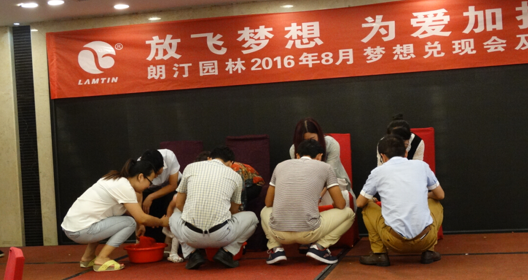 而感恩父母、家人環(huán)節(jié)將晚會(huì)徹底推向了另一個(gè)高潮,公司專程將圓夢(mèng)員工的父母、家人請(qǐng)到了晚會(huì)現(xiàn)場(chǎng),在感恩父母、家人環(huán)節(jié)中,我們的圓夢(mèng)員工親自為母親、愛(ài)人洗腳,望著母親老去的容顏,想著母親、愛(ài)人為自己付出的全部,他們眼睛里泛出了淚花,這淚光中充滿了感激之情,洗腳結(jié)束,圓夢(mèng)員工情不自禁的擁抱了自己的母親和愛(ài)人,現(xiàn)場(chǎng)員工也想起來(lái)了雷鳴般的掌聲,而后由朗汀園林公司代表為圓夢(mèng)員工母親及愛(ài)人獻(xiàn)上鮮花以表達(dá)公司對(duì)他們的感激之情。