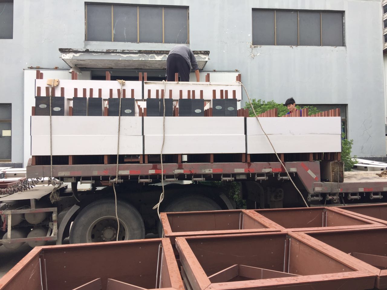 這是昨天運(yùn)往安徽池州車輛,車上就是黑白相間單板花箱,可以看的出,朗汀員工臉上洋溢著幸福的笑容,朗汀的員工就是這種對工作飽滿的熱情,才有了精良的花箱產(chǎn)品,他們?yōu)樽约候湴?,為朗汀的成績感到驕傲也為全國的綠化事業(yè)而感到驕傲。
