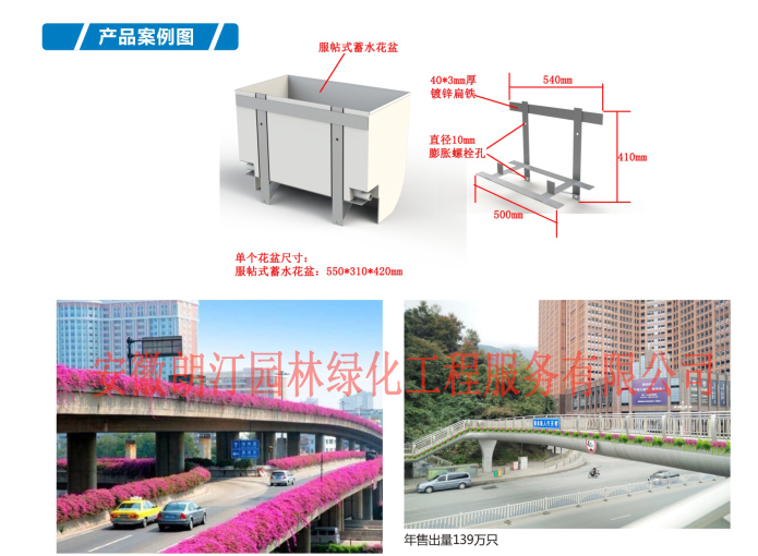 那么高架橋綠化最主要的因素還是得看用什么花盆放在高架橋上面。今天介紹一款朗汀園林新款高架橋花盆--服貼式蓄水花盆又稱為男人花盆??捎糜诘缆纷o欄和高架橋護欄。
