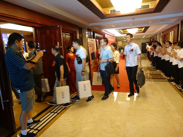 營(yíng)銷中心張梅、王敏掌門授銜儀式,緊接著由掌門給弟子王詠、周世進(jìn)授銜,最后營(yíng)銷中心全體人員宣誓。