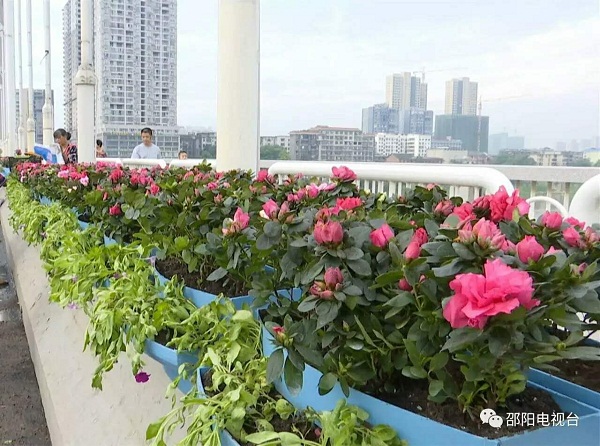 邵陽近年來通過加大投入在西湖橋上安裝8500多顆LED七彩點光源,并通過栽種綠植、培育鮮花,讓橋身變身成為小花園,這里栽植了大量的植物,西洋杜鵑、垂釣牽?;ü?000組,市民可以在橋上穿行,感受湖水的清涼和花朵的芬芳。