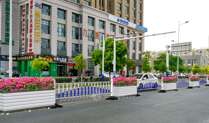 隔離帶上的道路護欄花箱,在被撞倒的時候,能避免多米諾骨牌效應(yīng),不會成片損壞,撞壞哪里換哪里,大大降低維修成本。