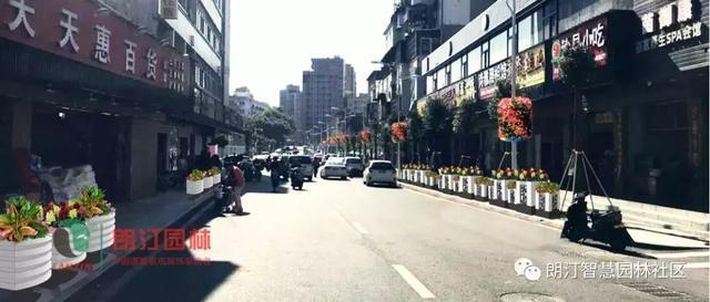 道路景觀提升:由于左側(cè)人行道較窄,我們可以放置一桶一鏈?zhǔn)交ㄏ洌ê着瑁咳齻€(gè)花箱放一起;右側(cè)人行道,放置3+2藝術(shù)花箱或者“君子”組合藝術(shù)花箱,從而達(dá)到道路兩側(cè)綠色包裝的效果。