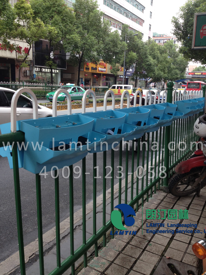 產(chǎn)品特點和用途:每只花箱有上下兩層種植室,立體景觀效果更豐滿,花箱內(nèi)分為蓄水層和種植層,植物可以通過面帶或植物虹吸現(xiàn)象從蓄水層吸水,大大降低養(yǎng)護成本,并能充分利用雨水;當兩只花箱左右組合后,可以騎在護欄上,根據(jù)護欄寬度可以自由調(diào)節(jié),立體效果更強??梢詮V泛用于護欄綠化,窗臺、陽臺綠化,圍墻、擋土墻綠化、隔離欄綠化、防撞墻綠化、人行天橋綠化等,也可以用于蔬菜、瓜果種植。