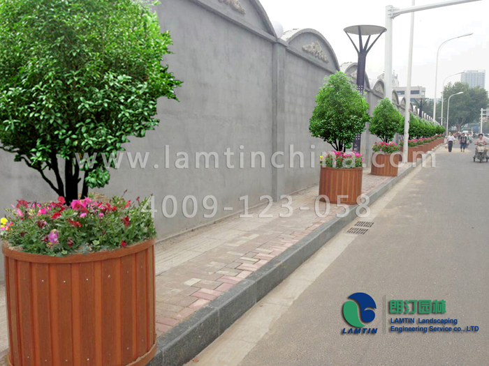 該花箱直徑80cm,高70cm,尺寸,顏色,款式都可以定制,用在道路隔離帶,人行道,行道樹之間,廣場,公園等地方都非常合適,采用PVC微發(fā)泡板進行加工,其固土性更好,美觀性更好。