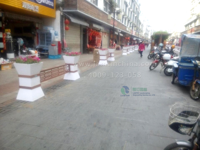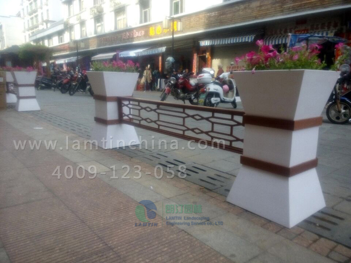 安徽朗汀園林于今年4月(即2015年4月)在邵武的道路隔離花箱-美女腰花箱工程正式完工。美女腰花箱是采用PVC材質(zhì)制作而成屬于PVC道路花箱的一種。