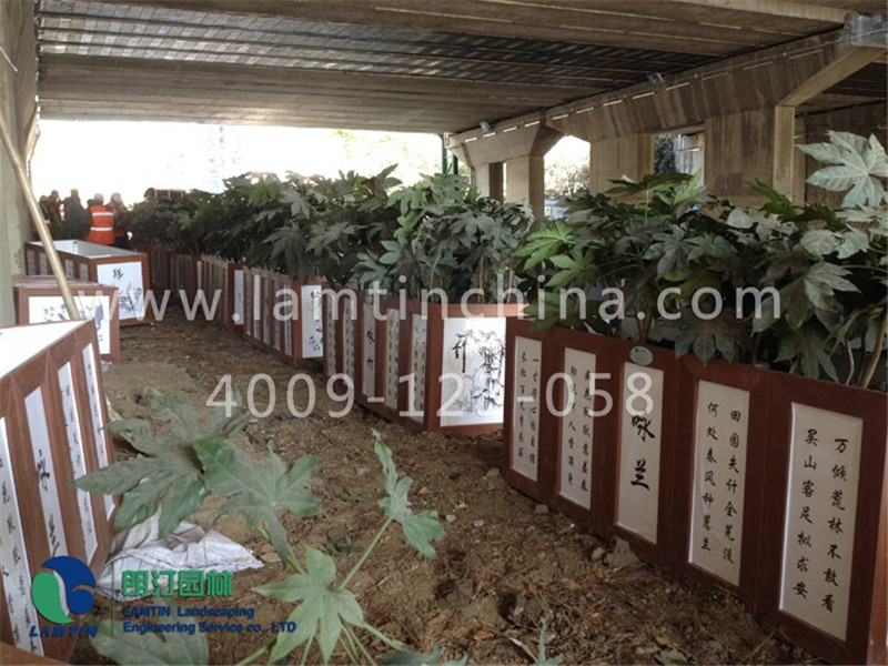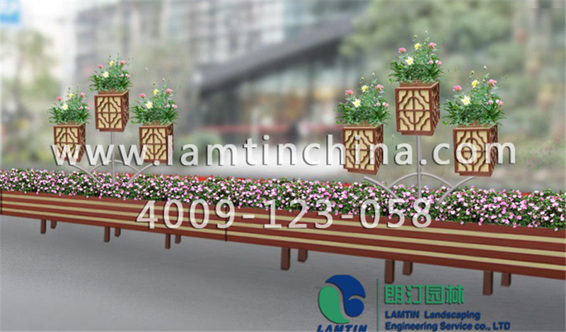 道路隔離花箱產品:領獎臺花箱、宮燈藝術花箱、祥瑞道路隔離花箱、唐風藝術花箱、書香門第座椅組合花箱等。