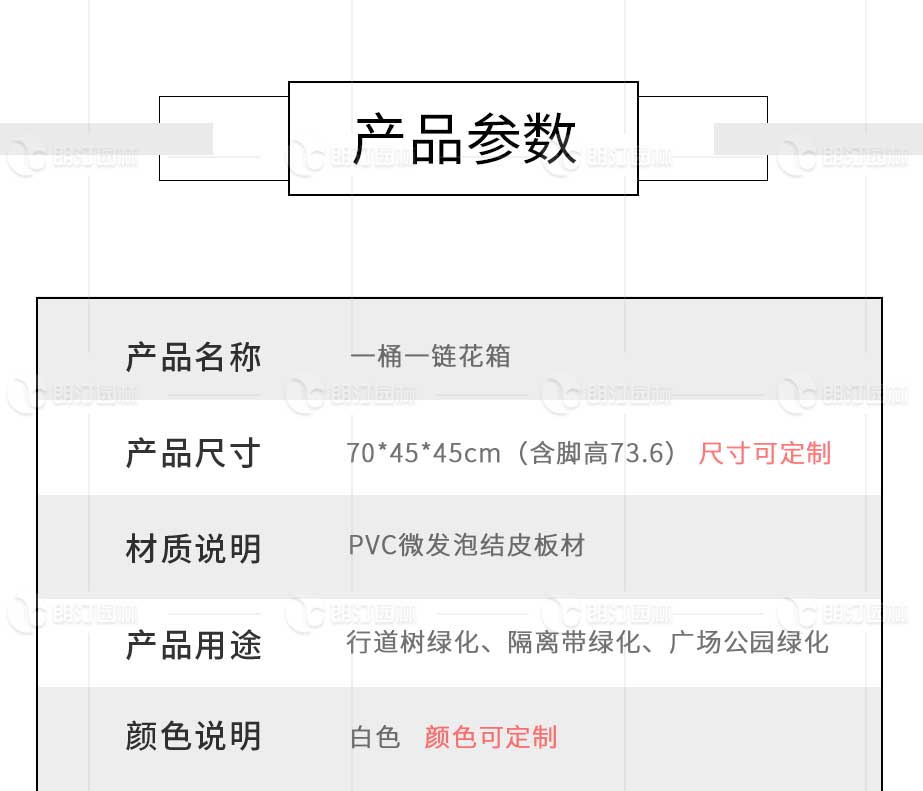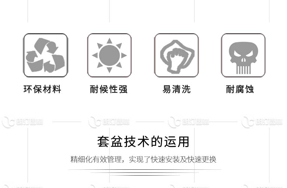 特點(diǎn):PVC微發(fā)泡花箱,套盆自帶蓄排水功能,內(nèi)有隔水板和吸水棉條