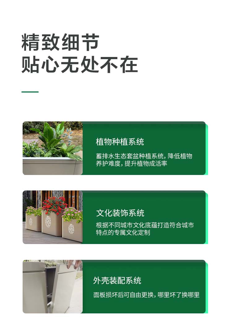 特點(diǎn):防腐防銹,可移動式花箱,組合式花箱,裝配式花箱,獨(dú)立種植箱,提前工廠育苗,存活率高,高顏值